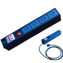 Zapatilla Reforzada 4 Tomas combinados, medidor de corriente y tensión, térmica bipolar, cable de 3mts de largo 3x1,5mm2 ficha macho de 10A